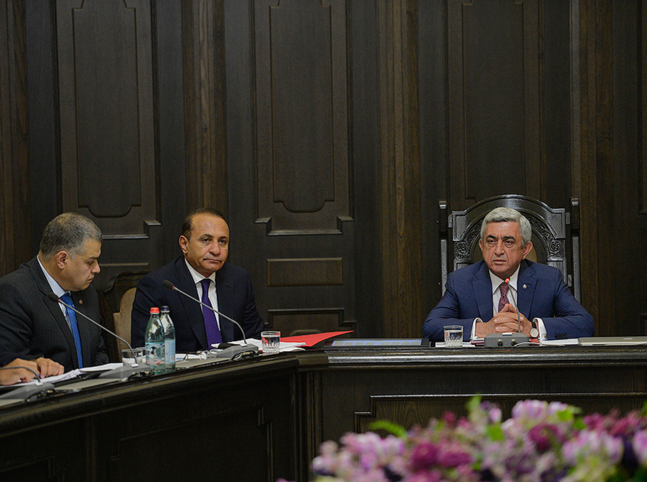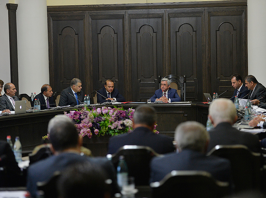 Երեւան: Մեդիամաքս: «Շանթ-2015» ռազմավարական հրամանատարաշտաբային զորավարժությունների շրջանակում ՀՀ նախագահ Սերժ Սարգսյանն այսօր հրավիրել եւ վարել է ՀՀ կառավարության պայմանական նիստ: