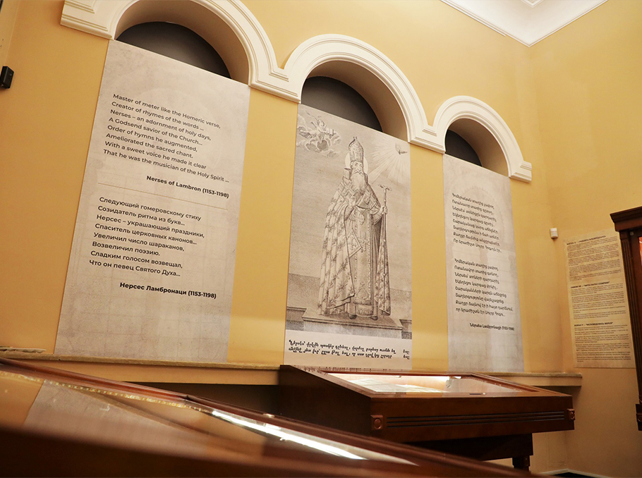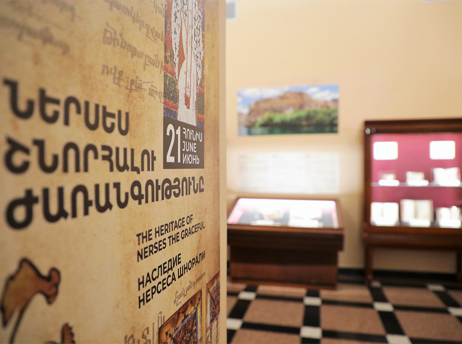 Մեծ մտածող, բանաստեղծ, աստվածաբան Սուրբ Ներսես Շնորհալի հայրապետի մահվան 850-րդ տարելիցին նվիրված գիտաժողովի շրջանակում Մատենադարանի թանգարանային մասնաշենքում բացվել է «Ներսես Շնորհալու ժառանգությունը» ցուցահանդեսը, որտեղ ներկայացված են հայրապետի գրական ժառանգությունը եւ գործունեությունը։