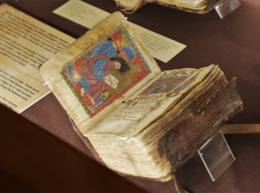 Ներկայացված են Մատենադարանում պահվող ձեռագրերը, ինչպես նաեւ Շնորհալու ամենահայտնի գործերից մեկի` «Հավատով խոստովանիմ» աղոթքի ձեռագիր եւ տպագիր օրինակ հմայիլներն ու հնատիպ գրքերը` տարբեր լեզուներով (անգլերեն, չինարեն, եբրայերեն եւ այլն):