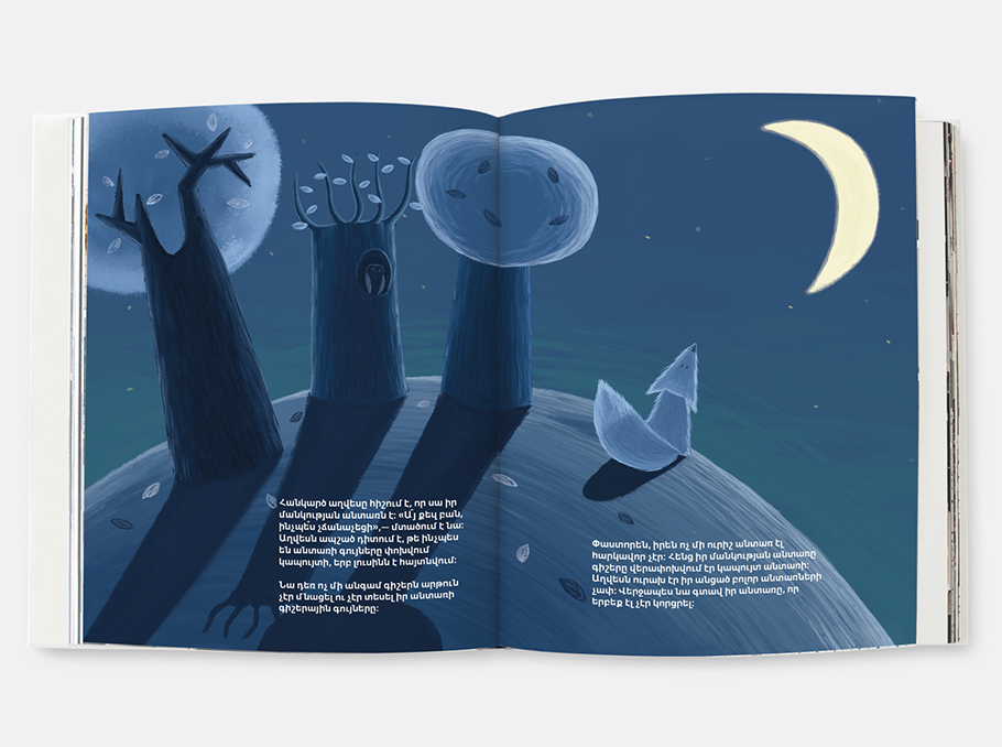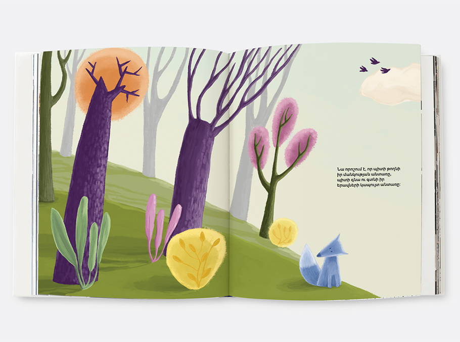 Ֆրանսիայում շատ հաճախ էր գրախանութներում մանկական գրականություն կարդում։ Երբ որոշեց իր գիրքը ստեղծել, երկար ժամանակ պատմություն էր փնտրում․ հեքիաթներին ու տարածված թեմաներին անդրադառնալ չէր ուզում։ Քանի որ գրելը նրան խորթ չէր, փորձեց ստեղծել իր պատմությունը կապույտ աղվեսի մասին։ Հիմա նա հեղինակ-նկարազարդող է։
