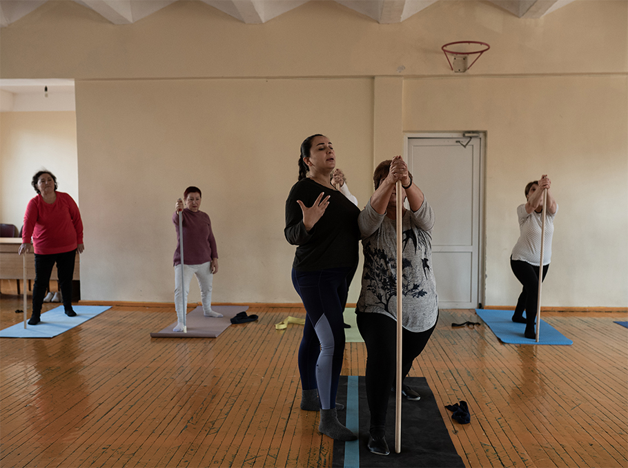 Սկզբում երեք-չորս կին էին գալիս։ Թեթեւ վարժություններ՝ աթոռների վրա։ Բայց ծրագիրը փոխվեց հենց իրենց պահանջով։