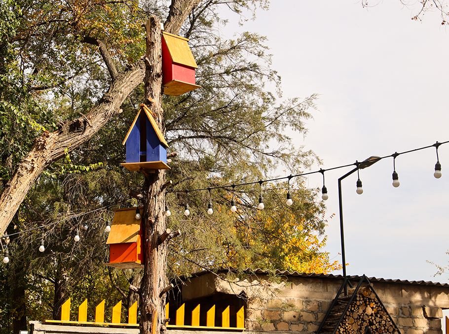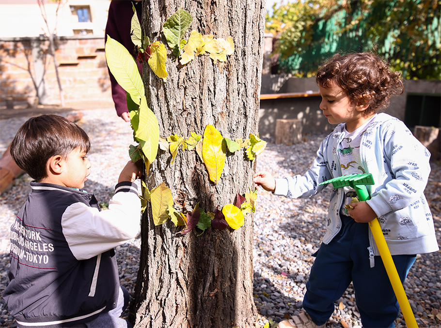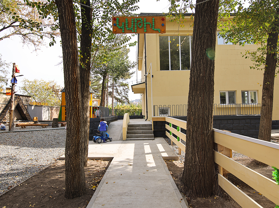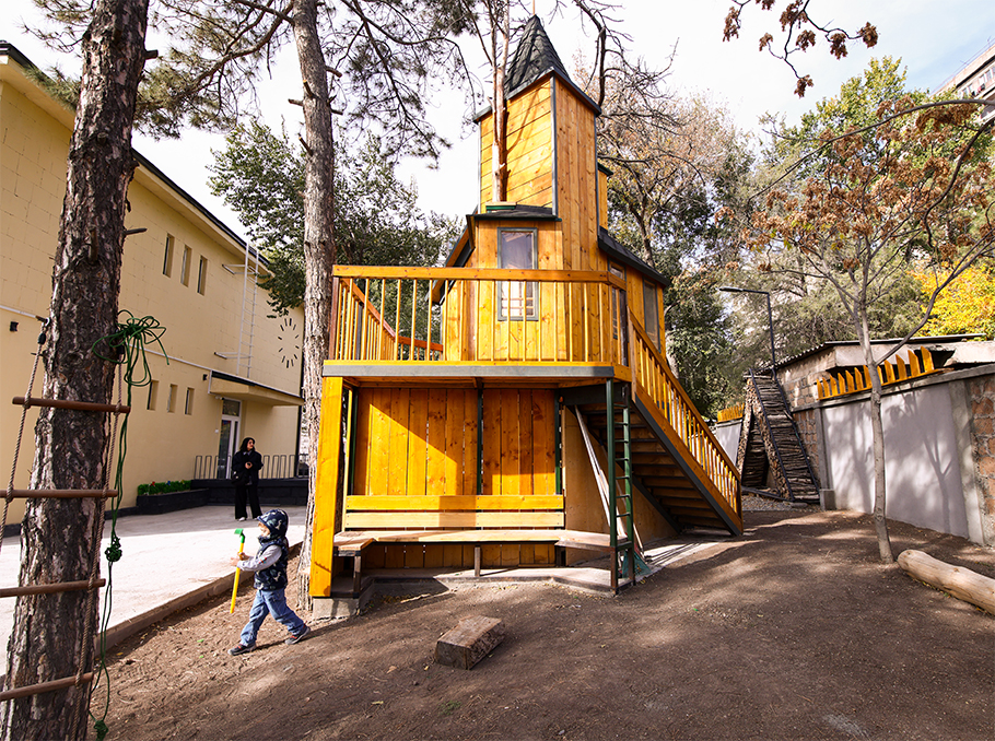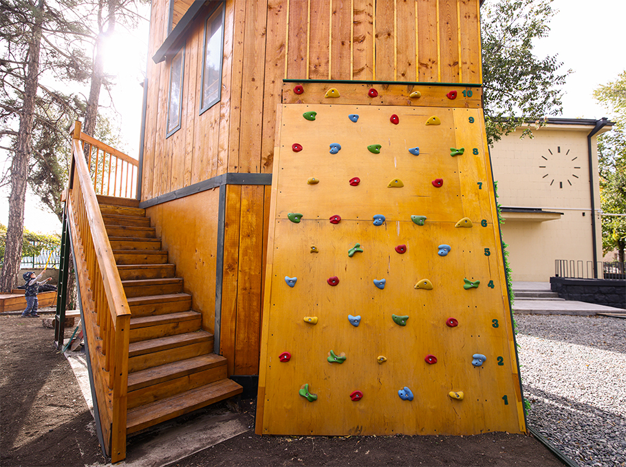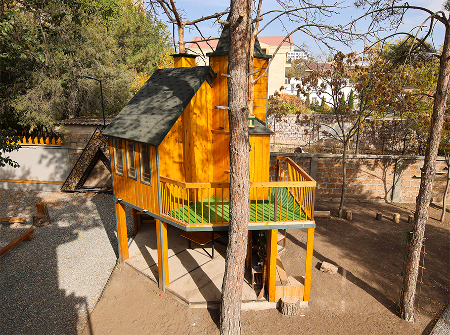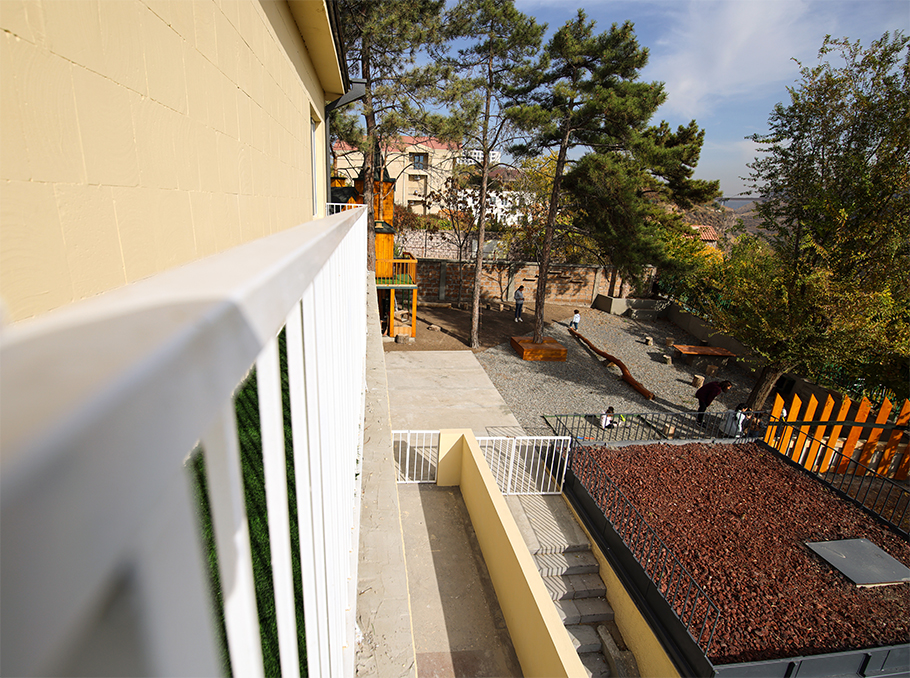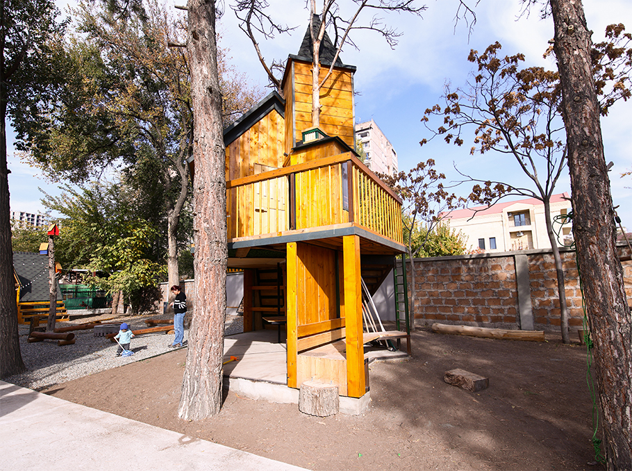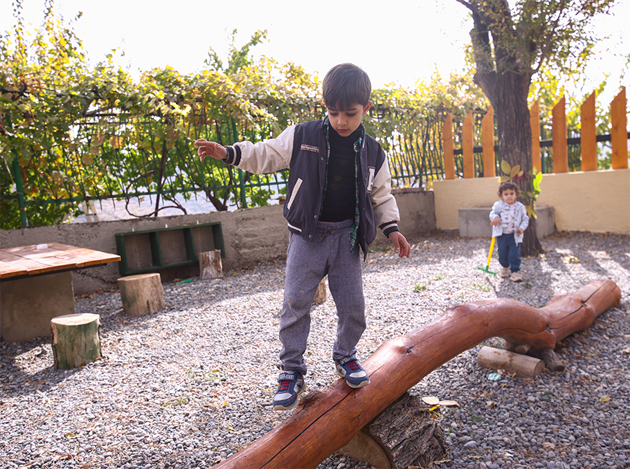 Տարածքը կառուցված է այնպես, որ երեխան ամբողջ օրը գտնվում է բնության հետ շփման մեջ։ Հաճախ քայլում են ոտաբոբիկ. հողը, խոտը, ջուրը դառնում են շոշափելի ուսուցիչներ՝ եթե մարմինը «գիտի», միտքն էլ արագ կապեր է կառուցում: