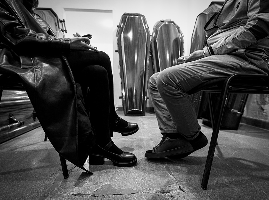 Դագաղները դասավորված են կողք կողքի՝ խնամքով, մի քիչ ավելին, քան պարզապես առարկաներ։ Միջանցքը դատարկ է, բայց թվում է՝ ինչ-որ մեկի հայացքն անցնում է պատերի վրայով։