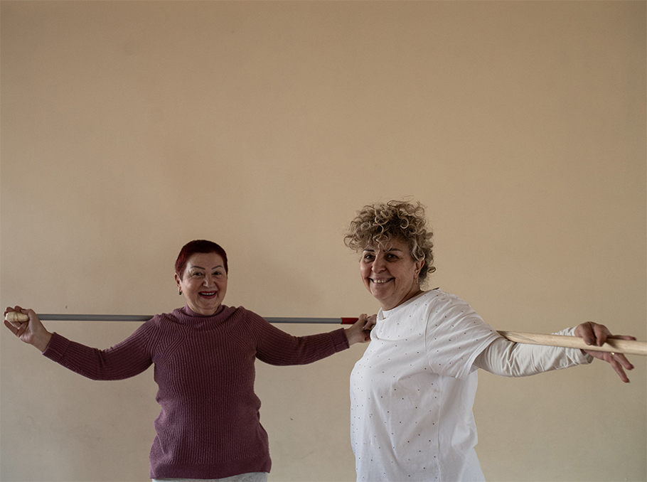 Սկզբում երեք-չորս կին էին գալիս։ Թեթեւ վարժություններ՝ աթոռների վրա։ Բայց ծրագիրը փոխվեց հենց իրենց պահանջով։