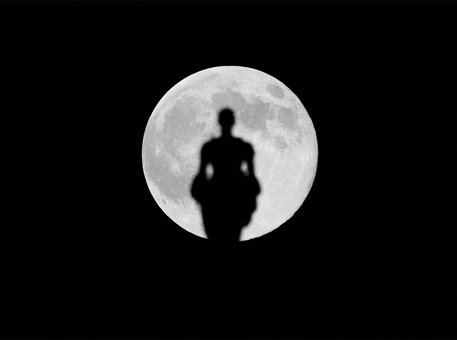 Լիալուսինը բարձրանում է Միլանի տաճարի արձանի հետևում: