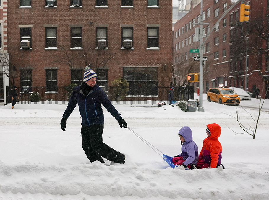 Ձմեռային փոթորիկը երեխաներին հնարավորություն է տվել վայելել սահնակները Նյու Յորքի կենտրոնում: