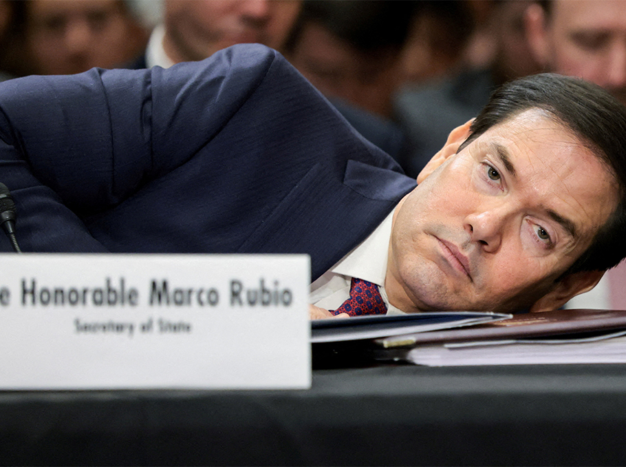 ԱՄՆ պետքարտուղար Մարկո Ռուբիոն փորձում է սեղանի տակից ինչ-որ բան հանել Սենատի արտաքին հարաբերությունների հանձնաժողովում իր ելույթի ժամանակ։