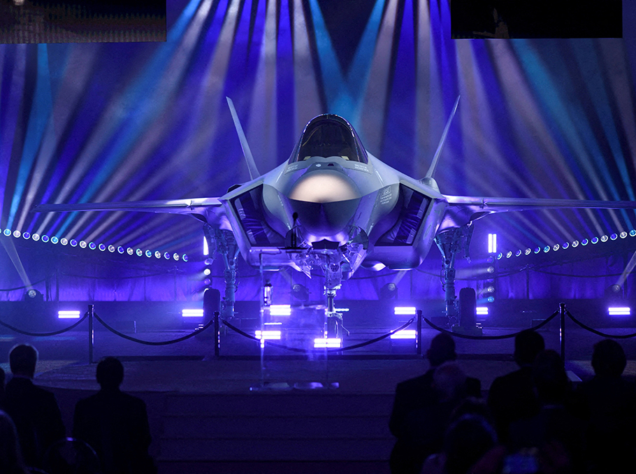 Unveiling of the new F-35 during a rollout ceremony of F-35 fighter jets ordered by Finland at the Lockheed Martin Aeronautics facility in Fort Worth, Texas.