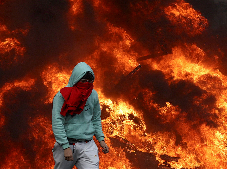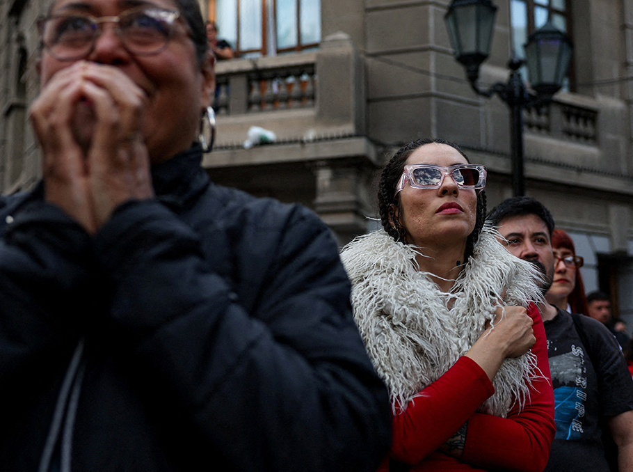 People gather to watch the vote count during the presidential runoff election, in Santiago, Chile.