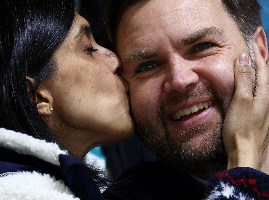 Second lady Usha Vance kisses U.S. Vice President and husband JD Vance