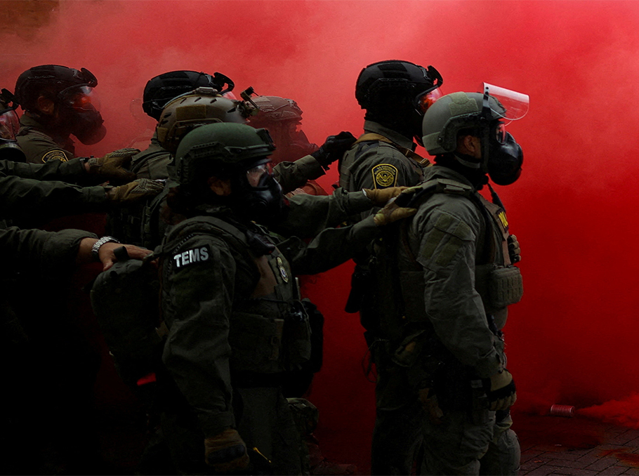Разгон демонстрантов перед штаб-квартирой Службы иммиграции и таможенного контроля США (ICE) в Портленде.