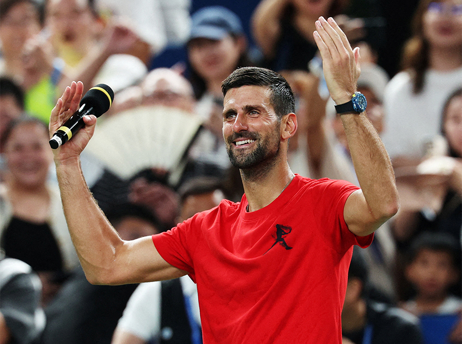 Новак Джокович празднует победу в четвертьфинальном матче на турнире Shanghai Masters.