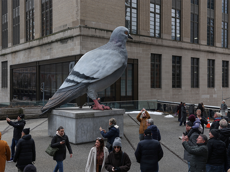 Скульптура голубя под названием «Динозавр» художника Ивана Арготе в Нью-Йорке.